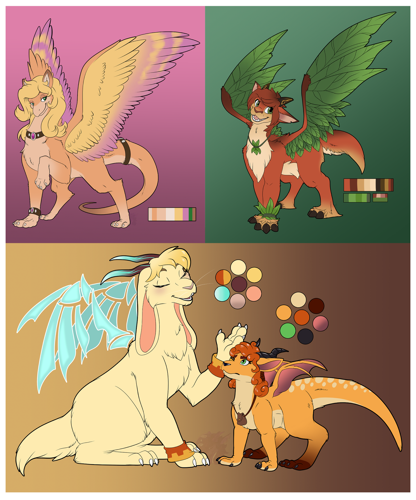 Level 1 or Level 2!A Level 1 ref is just a Fullbody of the Character from one side (facing either left or right) and a Color pallet!And a Level 2 Ref has the same thing, only with an additional Cell Shaded Headshot and Name Banner. As well as a close up on what ever one detail you'd like (Like the backs of wings or certain markings). It also comes with one other Headshot that's Flat Colored with your OC's mouth open (Either saying something or just posing with an open mouth) to show off the mouth colors.