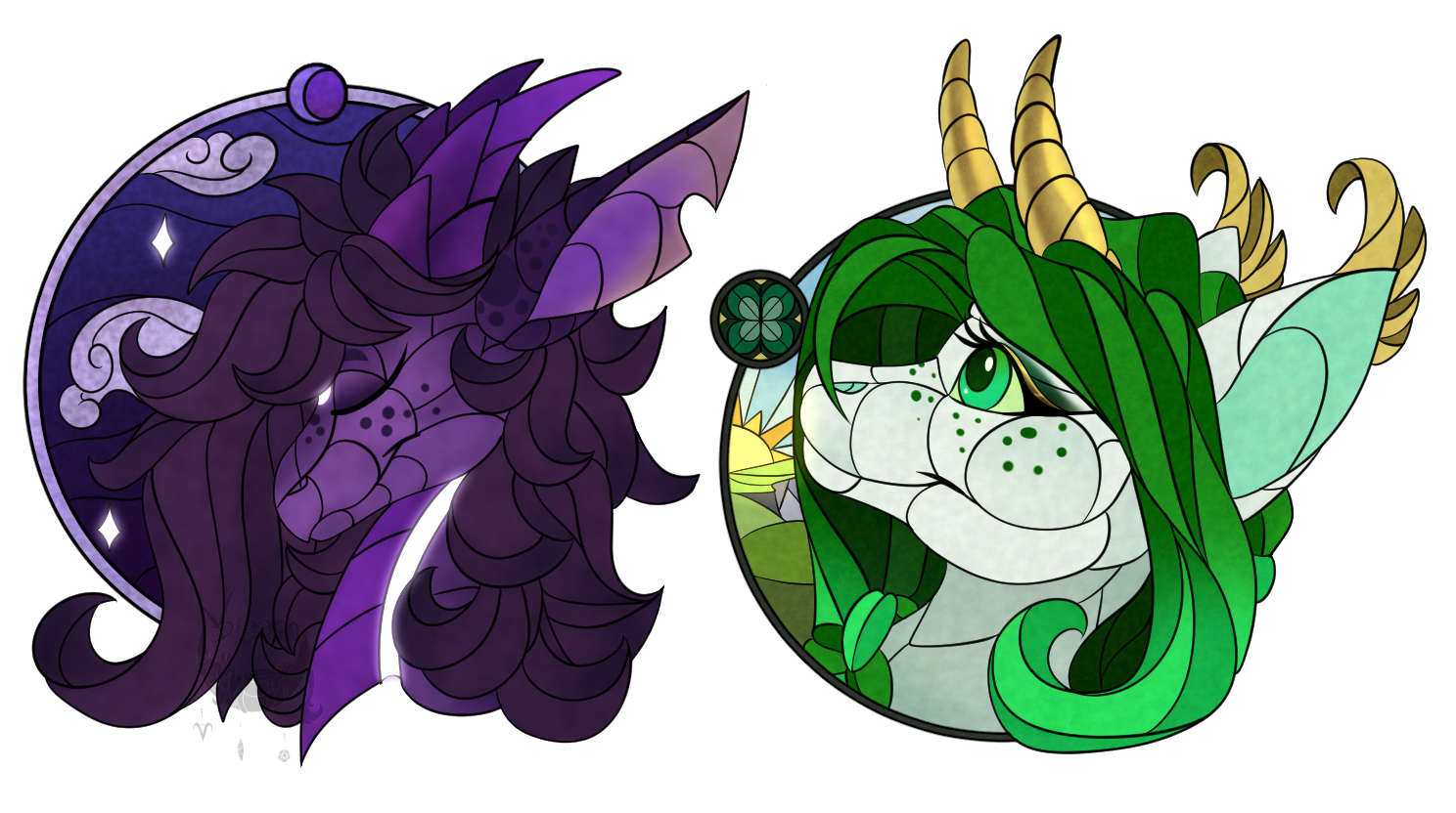 I've been practicing with making Stained Glass Styled pieces, and I'm willing to offer some for the rest of you fine folks! These don't involve much shading, are headshots only, and only really involve one OC!